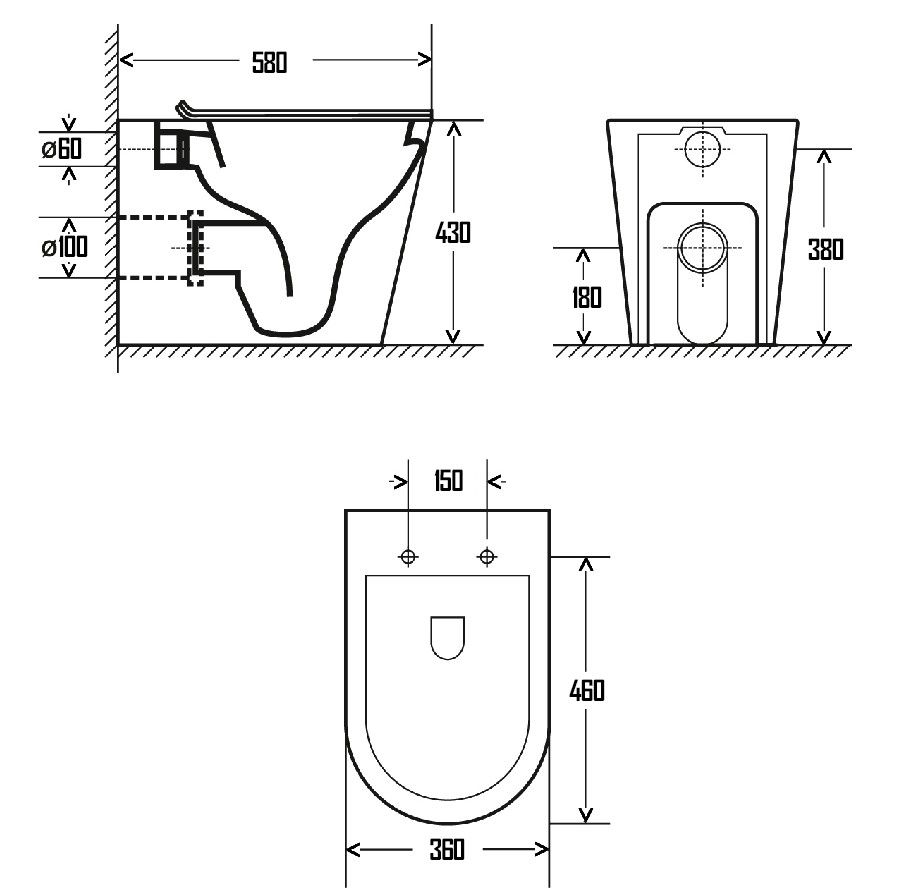 Прилегание унитаза к стене:вплотную