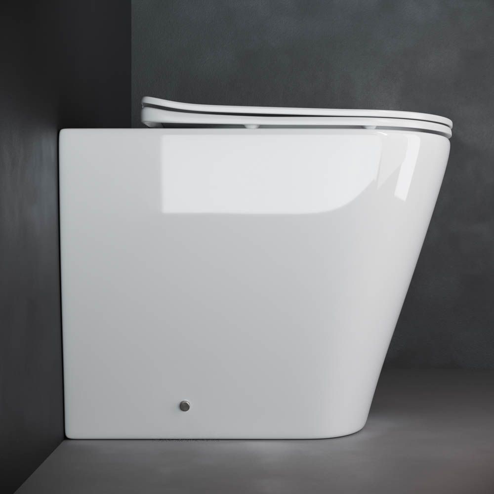 Напольный пристенный унитаз-соло HighLight Rimless, глубокий смыв, горизонтальный (универсальный) выпуск, с крепежом, ультра тонким сидением с функцией плавного закрытия, дюропласт