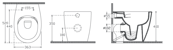 Прилегание унитаза к стене:вплотную