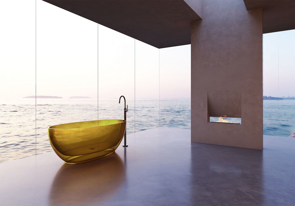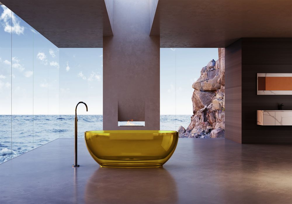 Прозрачная ванна ABBER Kristall AT9703Amber из полиэфирной смолы 170x75см жёлтый купить