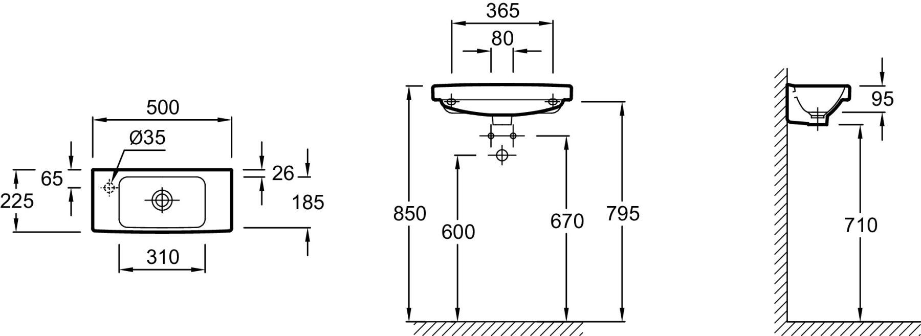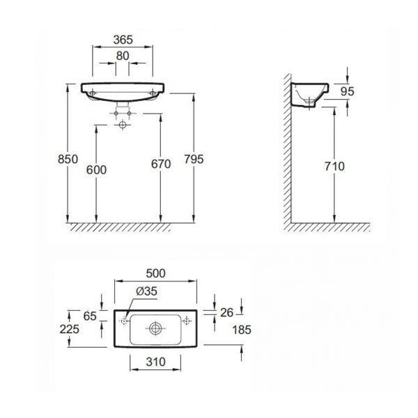 РАЗМЕТКА СВЕРЛЕНИЯ ОТВЕРСТИЯ ДЛЯ СМЕСИТЕЛЯ: С 1 отверстием для смесителя слева