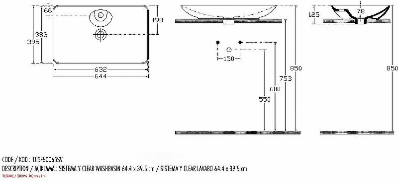 Монтаж: накладная на мебель (на столешницу).