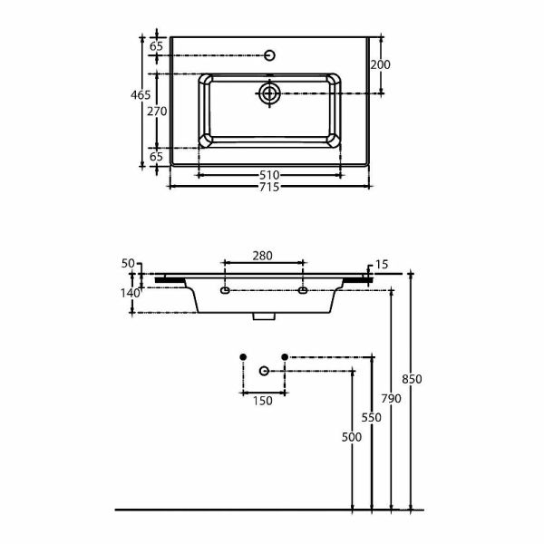 Отверстия под смеситель: 1.