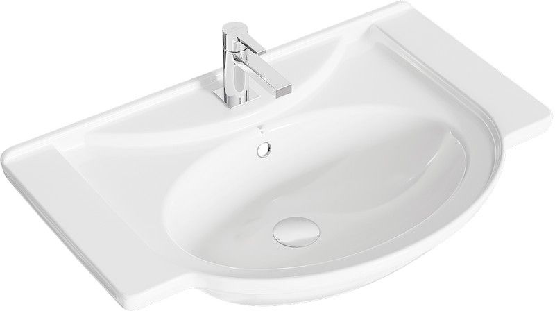 Основная линия керамических умывальников для мебели. Округлая форма чаши с достаточно большим пространством на боковых полочках. Универсальный дизайн подходящий к каждому стилю ванной мебели.