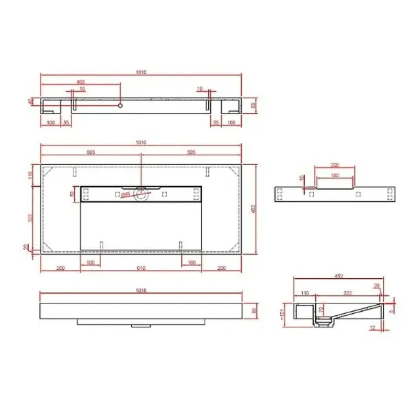 Размерный ряд раковин-моноблок 80см, 100см. 120см. 140см(возможна установка 2 смесителей).