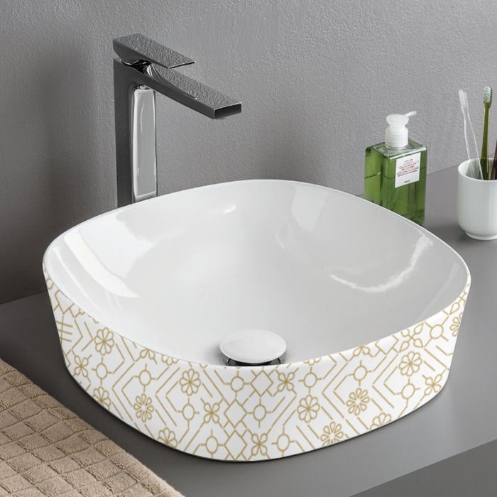 Раковина ArtCeram Ghost GHL001 01 90 белая El moro 41.5 смARTCERAM GHOST Раковина Ø420 мм., для установки на столешницу, без отверстий для смесителя, без перелива, цвет белый глянцевый, декор El moro