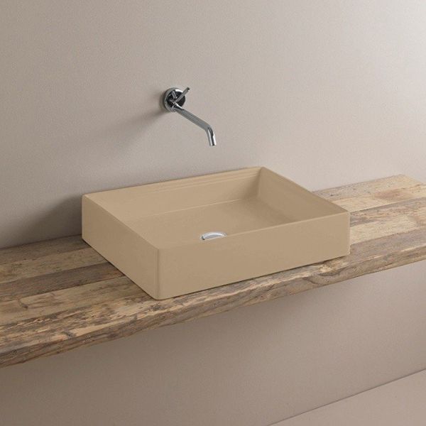Раковина ArtCeram Scalino SCL002 22 00 cream 55 смArtCeram Scalino SCL002 22 00 Раковина накладная, размер 55х38х12 см. Без перелива и плоскости под смеситель. Монтаж накладной на столешницу. Цвет cream Matt - фактура цемент.