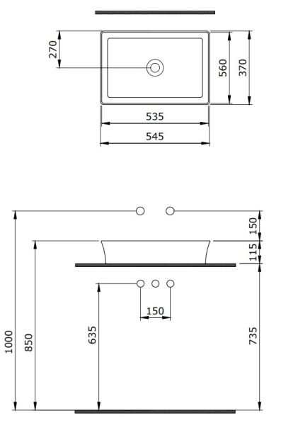 Накладная раковина из санфарфора Berges Ego SL размером 55х38х11,5 см.Прямоугольной формы, без отверстия под смеситель, глянцевая белая.