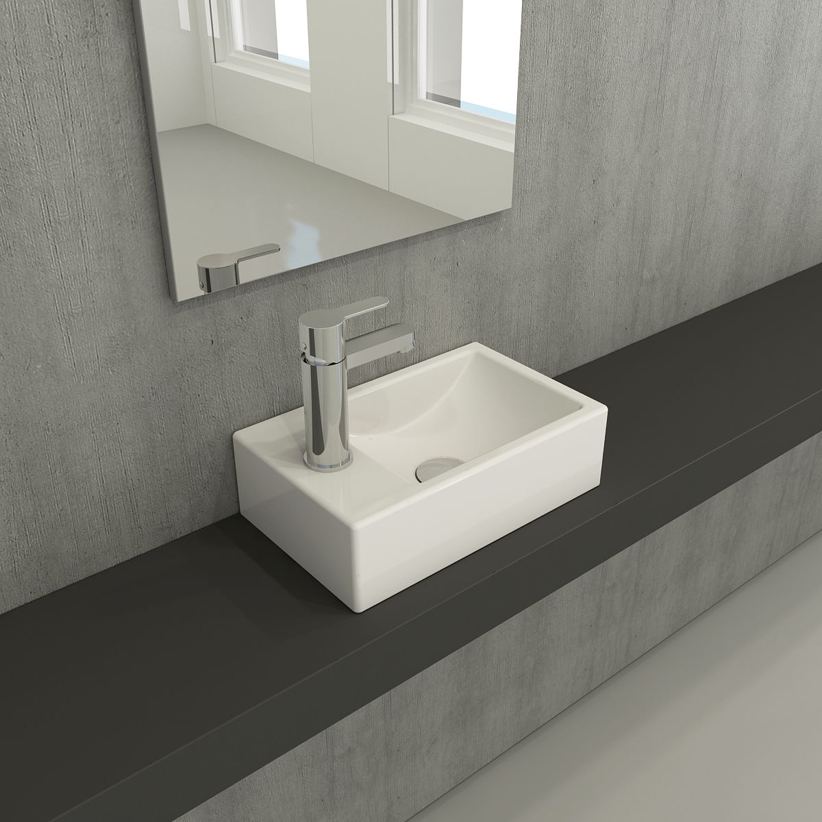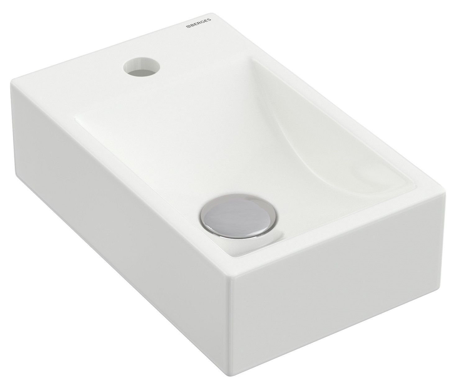 Подвесная раковина из санфарфора Berges Small размером 37х23х11 см.Прямоугольной формы, с отверстием под смеситель, глянцевая белая.Крепеж в комплекте.Подходит для использования на столешнице.