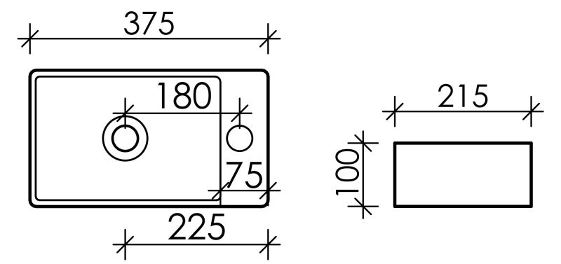 - Отверстие под смеситель справа