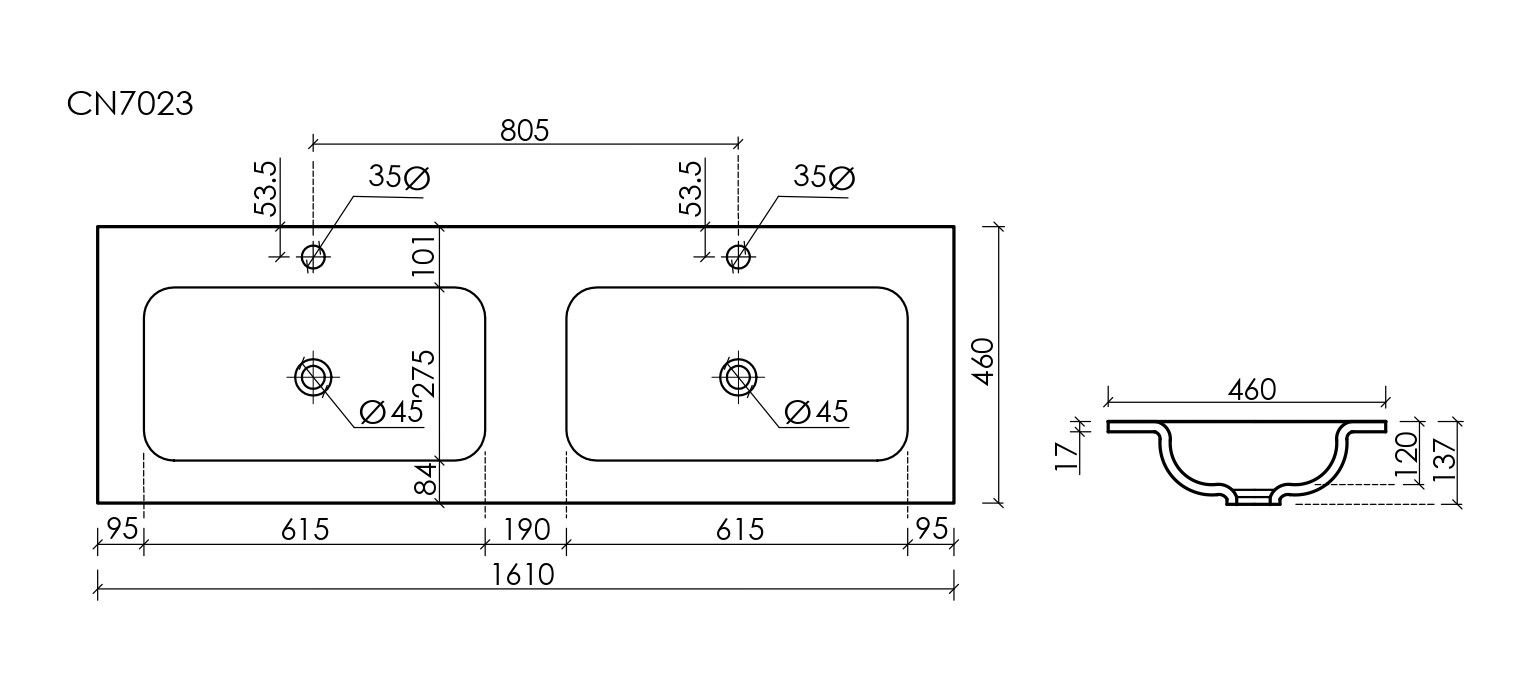 - Коллекция Grace. Размер 1610x457x137 мм, с двумя чашами и отверстиями под смеситель.