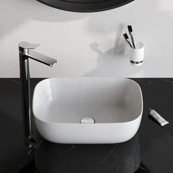 Универсальность — отсутствие отверстия под смеситель позволяет выбрать любую конфигурацию монтажа (настенный или настольный смеситель).