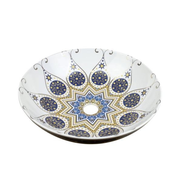Раковина чаша Bronze de Luxe Lotos 5008, белый/синий купить