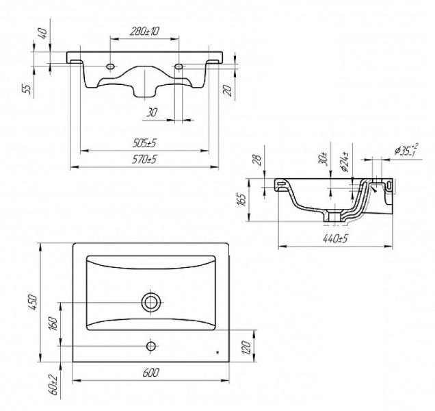 Размер (ШхВхГ): 600х165х450 мм.
