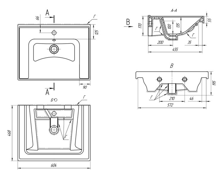 Тип: раковиныПо форме: прямоугольныеРазмер, мм (ШxГxВ): 604x468x195Размер в упаковке, мм (ШxГxВ): 634x498x225Цвет: белыйВес с упаковкой, кг: 14.7По монтажу: мебельнаяМатериал: керамика