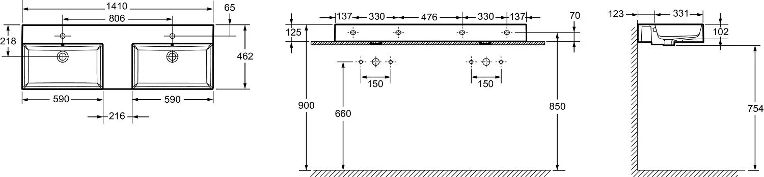 - Установка: подвесная или встраиваемая сверху тумбы, столешницы