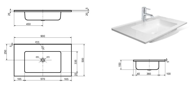 Данная раковина имеет правильную прямоугольную форму и большую рабочую зону, что делает ее использование максимально комфортным. Благодаря прямым линиям и гладкой поверхности раковина «Каре» займёт достойное место как в современном, так и в классическом интерьерах ванной комнаты.