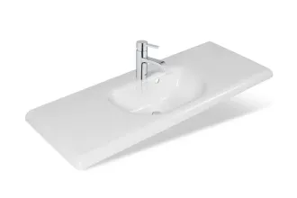 Изящная раковина, имеет сглаженные формы столешницы и чаши, что делает ее использование максимально удобным и приятным.