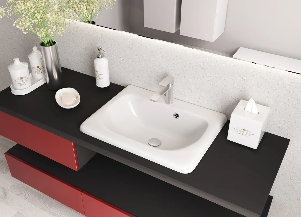 Изящная раковина, имеет сглаженные формы столешницы и чаши, что делает ее использование максимально удобным и приятным.