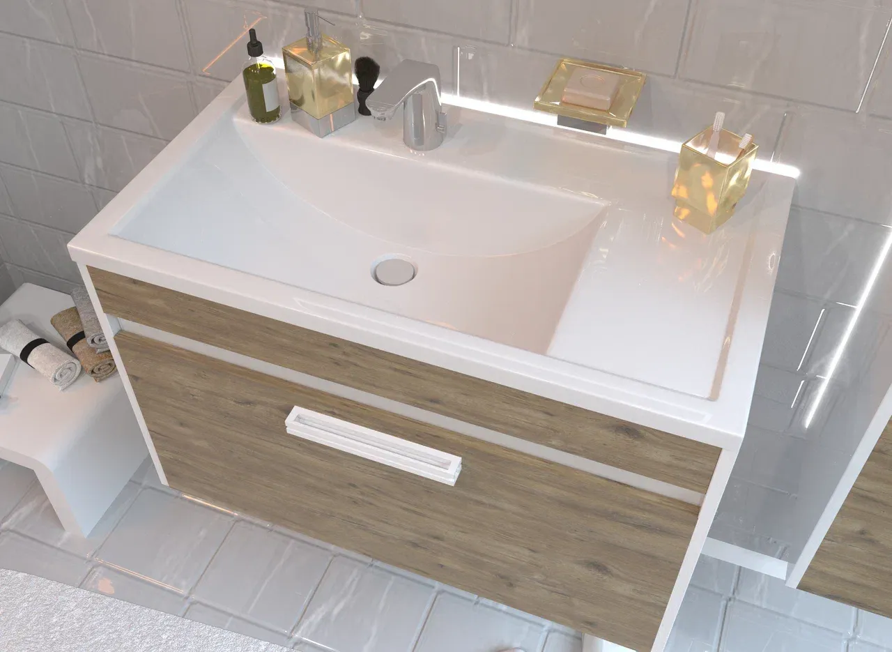 Прямоугольная раковина Валенсия выполнена в современном стиле. Имеет небольшую столешницу, где можно расположить принадлежности и бортики, которые повторяют форму чаши. Достаточно глубокая и удобная, с плавным спуском. Комфортная в использовании и в любом интерьере будет смотреться гармонично.