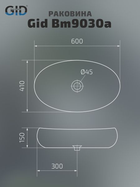 Раковина Gid Bm9030a 53371 накладная черная матовая 60x41x15 купить