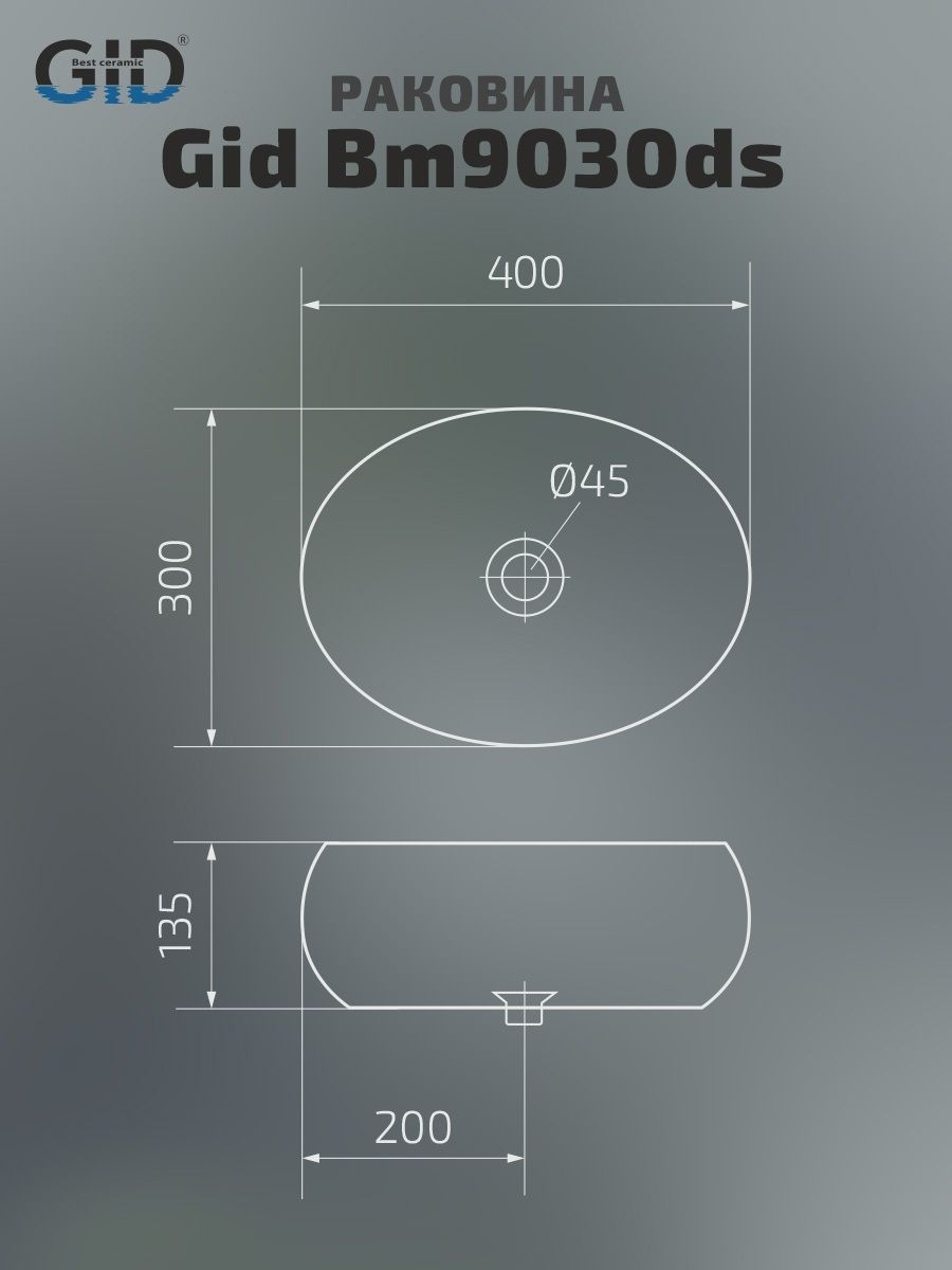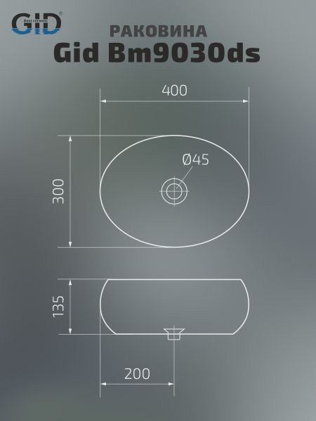 Раковина Gid Bm9030ds 53384 накладная черная матовая 40x30x13.5 купить