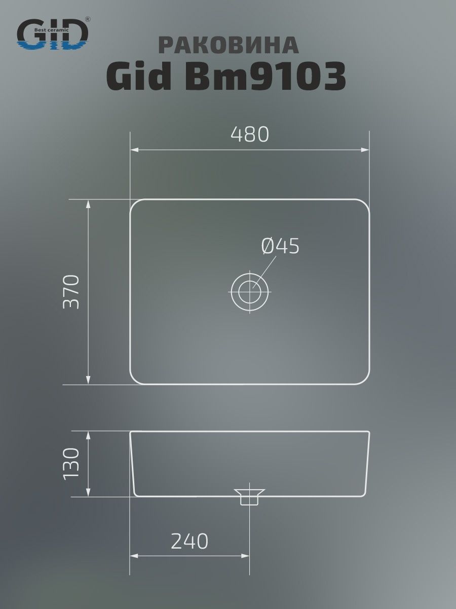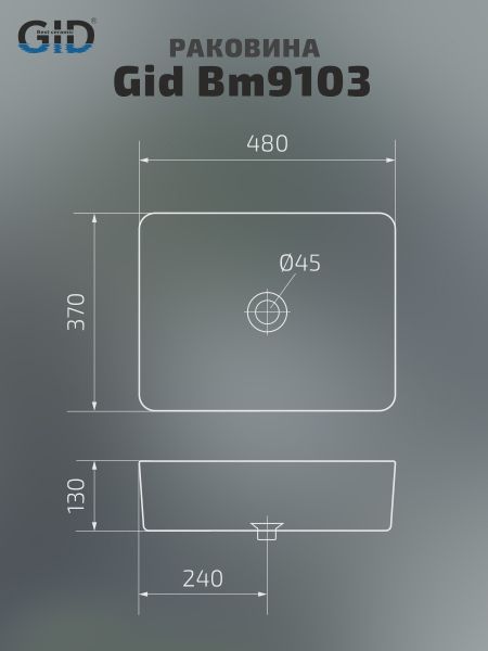 Раковина Gid Bm9103 53374 накладная черная матовая 48x37x13 купить
