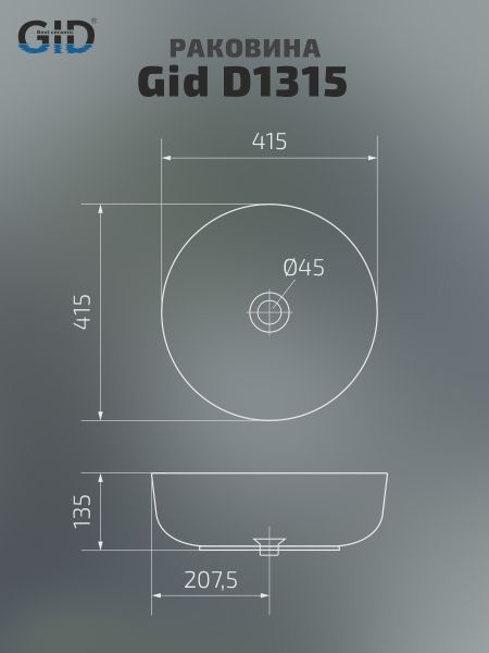 Раковина Gid D1315 51182 накладная белая 41.5x41.5x13.5 купить