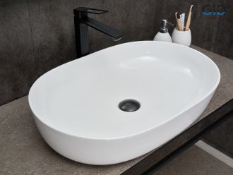 Серия Lago овальной формы — это испанское качество, соответствующее современным европейским требованиям. Накладная раковина GiD D1348 — сочетание элегантного дизайна и практичности для вашей ванной комнаты. Изготовлена из мелкопористой керамики с белым глянцевым покрытием, она придаст интерьеру свежесть и утонченность. Овальная форма обеспечивает оптимальное пространство для комфортного использования. Отсутствие отверстия под смеситель подчеркивает минималистичный стиль, а накладной способ монтажа на столешницу облегчает установку и позволяет создать современный облик ванной комнаты.