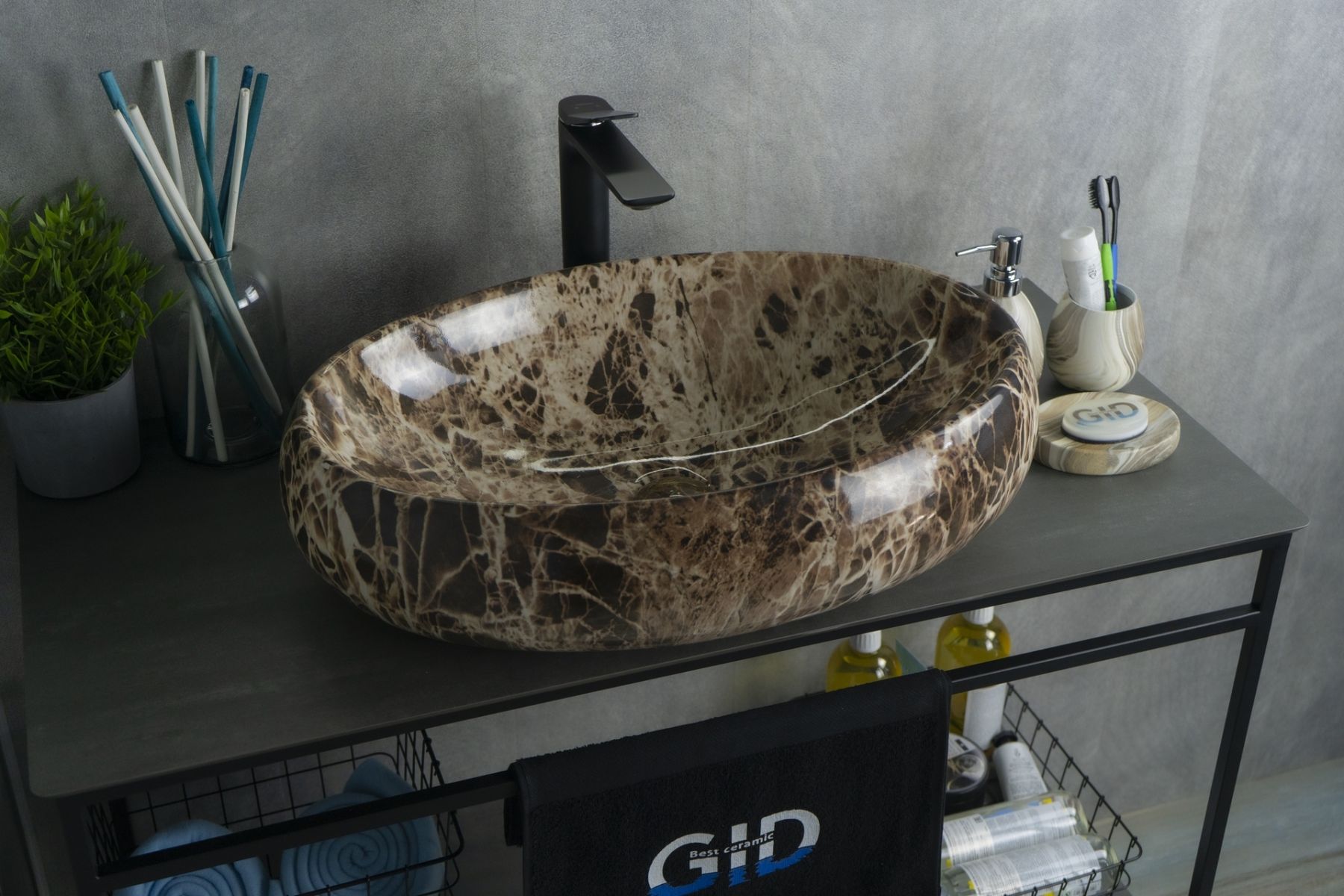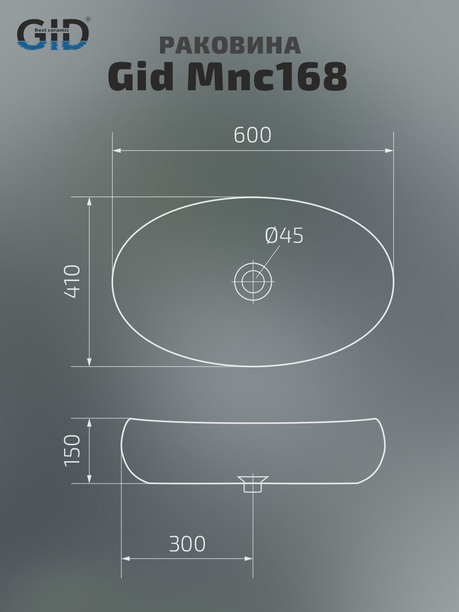 Серия Lago овальной формы — это испанское качество, соответствующее современным европейским требованиям. Раковина накладная GiD Mnc168 — стильная и современная модель, изготовленная из высококачественной керамики с глянцевой поверхностью, создающей эффект натурального камня. Её овальная форма и минималистичный дизайн идеально подходят для ванных комнат в любом стиле, от классического до современного. Модель предназначена для накладной установки на столешницу, что позволяет подчеркнуть изысканность интерьера. Отсутствие отверстия под смеситель позволяет выбрать любую модель настенного или встроенного смесителя.