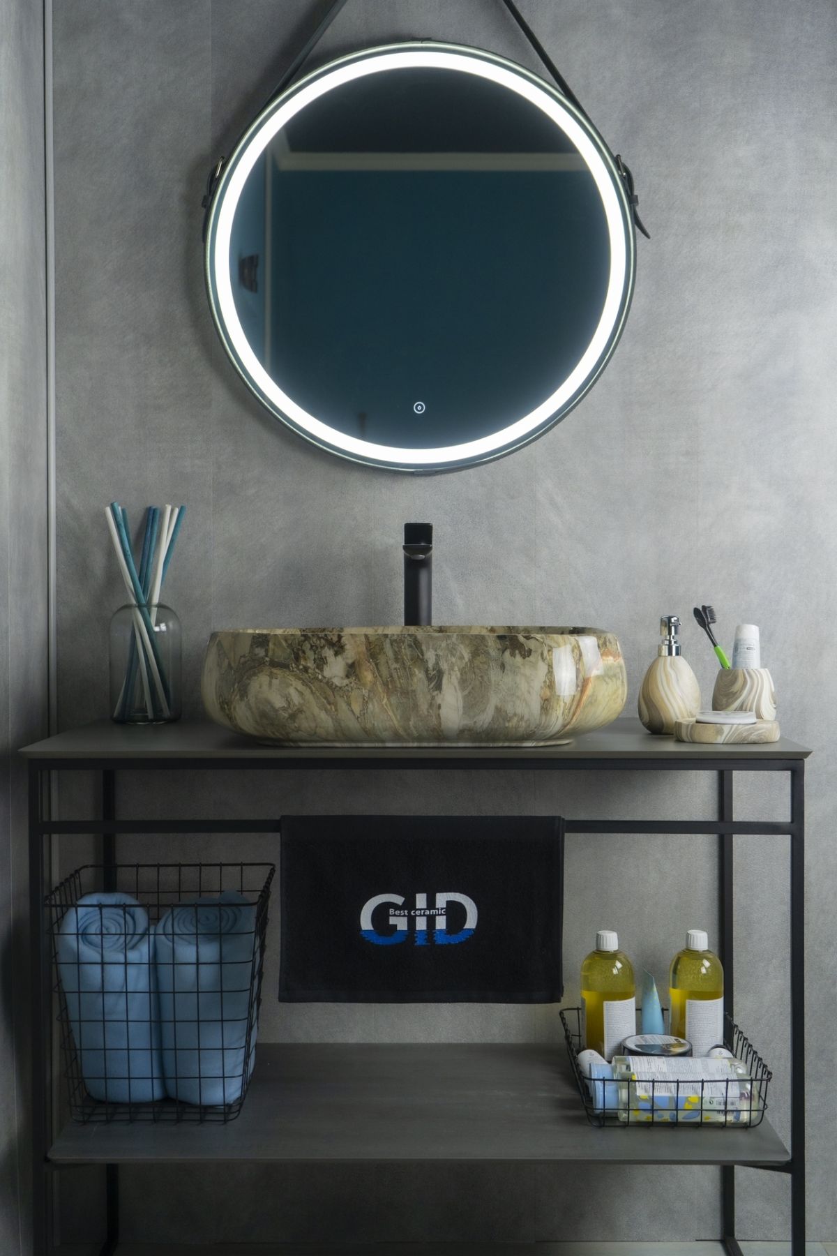 Серия Geometrico с прямоугольной формой: стиль и практичность с испанским качеством и европейскими стандартами. Раковина накладная GiD Mnc186 — элегантная модель, изготовленная из высококачественной керамики с глянцевой поверхностью, имитирующей текстуру натурального камня. Её изысканный дизайн и коричневые оттенки придают ванной комнате современный и утончённый вид. Раковина предназначена для установки на столешницу, что подчёркивает её стиль и функциональность. Модель не имеет отверстия под смеситель, что позволяет использовать различные варианты настенных или встраиваемых смесителей, предоставляя свободу в дизайне интерьера.