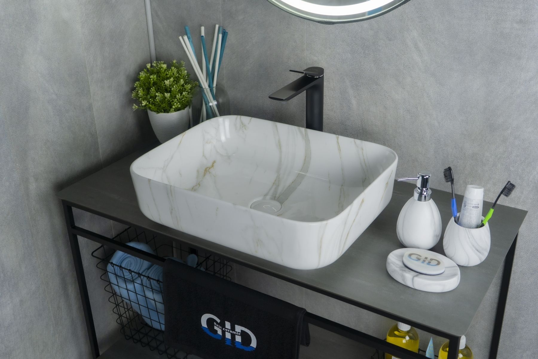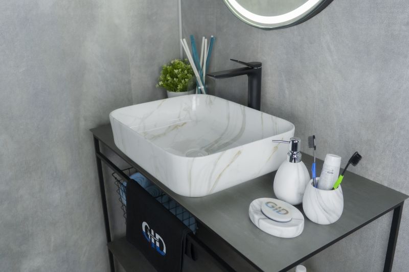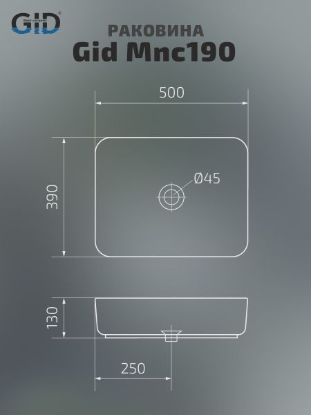 Серия Geometrico с прямоугольной формой: стиль и практичность с испанским качеством и европейскими стандартами. Раковина накладная GiD Mnc190 — элегантная модель прямоугольной формы, изготовленная из высококачественной керамики с глянцевой поверхностью, создающей эффект натурального камня. Её строгий и современный дизайн идеально подойдёт для ванных комнат в минималистичном или современном стиле. Благодаря отсутствию отверстия под смеситель раковина позволяет реализовать различные дизайнерские решения по размещению смесителя. Раковина предназначена для установки на столешницу, подчёркивая стильный и функциональный интерьер ванной комнаты.