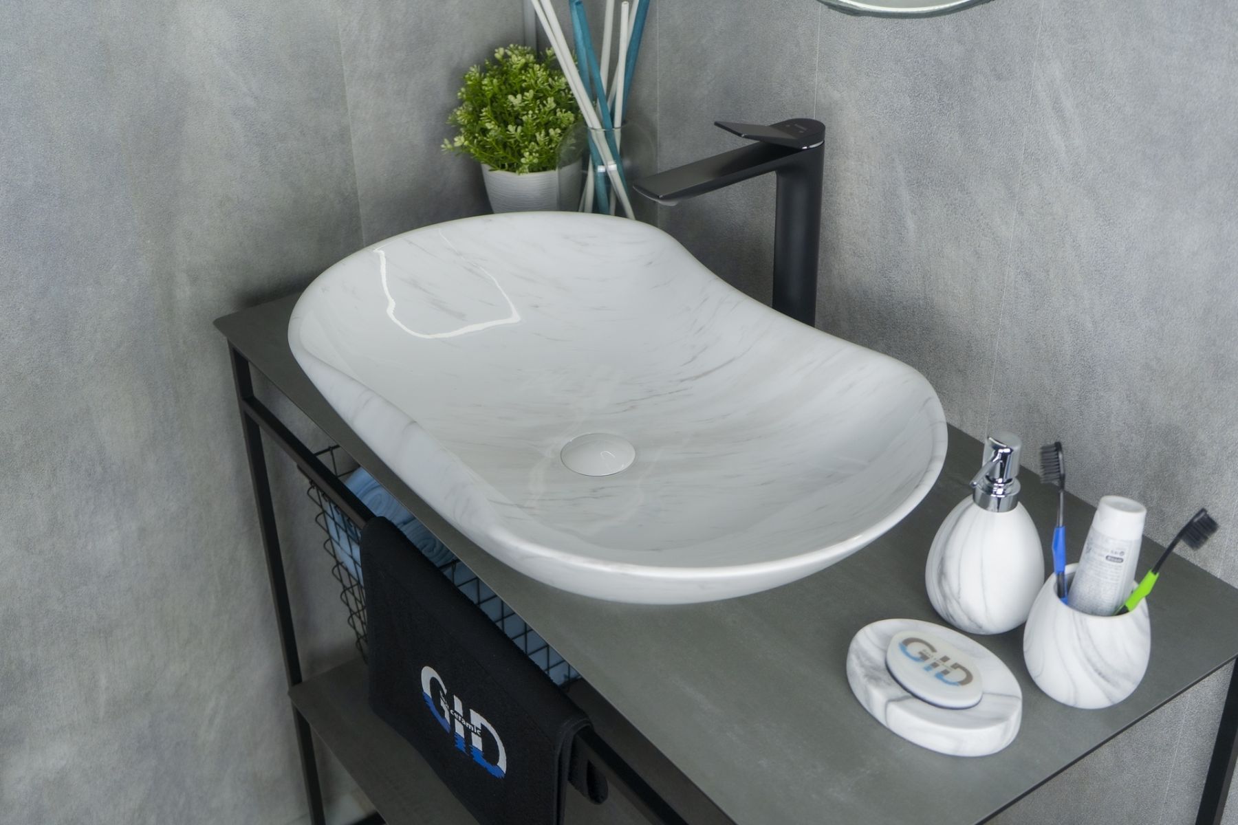 Раковина Gid Mnc503H012 54464 накладная под камень глянцевая 66.5x41x12 купить