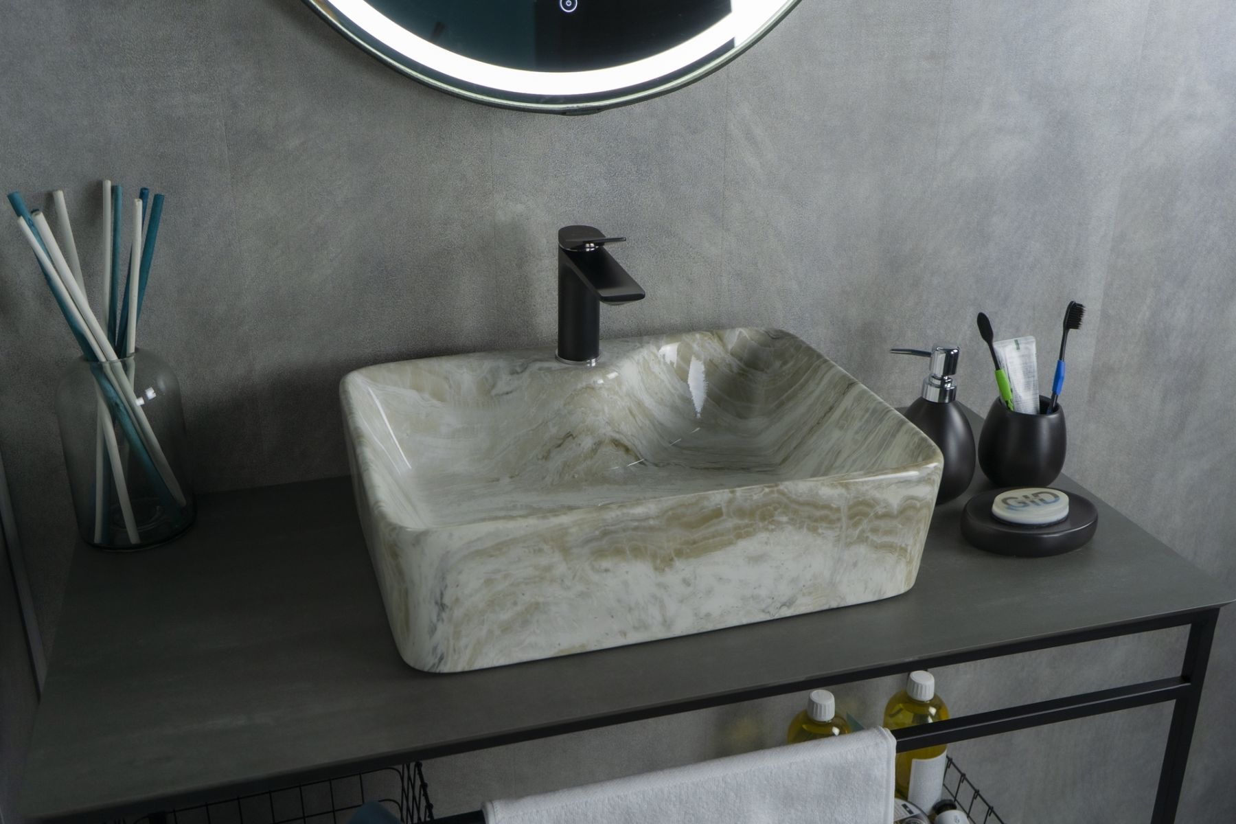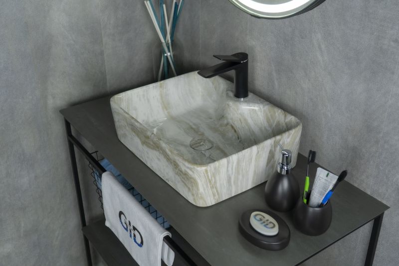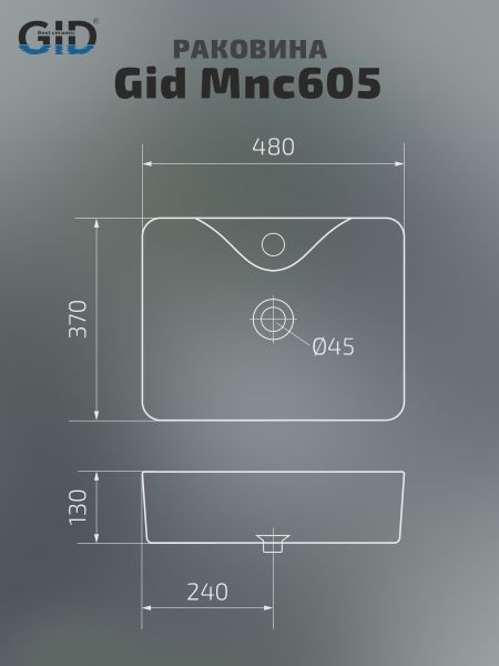 Серия Geometrico с прямоугольной формой: стиль и практичность с испанским качеством и европейскими стандартами. Раковина накладная GiD Mnc605 — стильная модель прямоугольной формы, изготовленная из высококачественной керамики с глянцевой поверхностью, имитирующей натуральный камень. Она оснащена отверстием для смесителя, что делает её практичным выбором для ванных комнат в любом стиле. Раковина предназначена для установки на столешницу или мебель, обеспечивая удобство монтажа и гармоничное сочетание с интерьером. Модель отличается долговечностью, простотой ухода и элегантным дизайном, что делает её отличным решением для создания комфортного и стильного