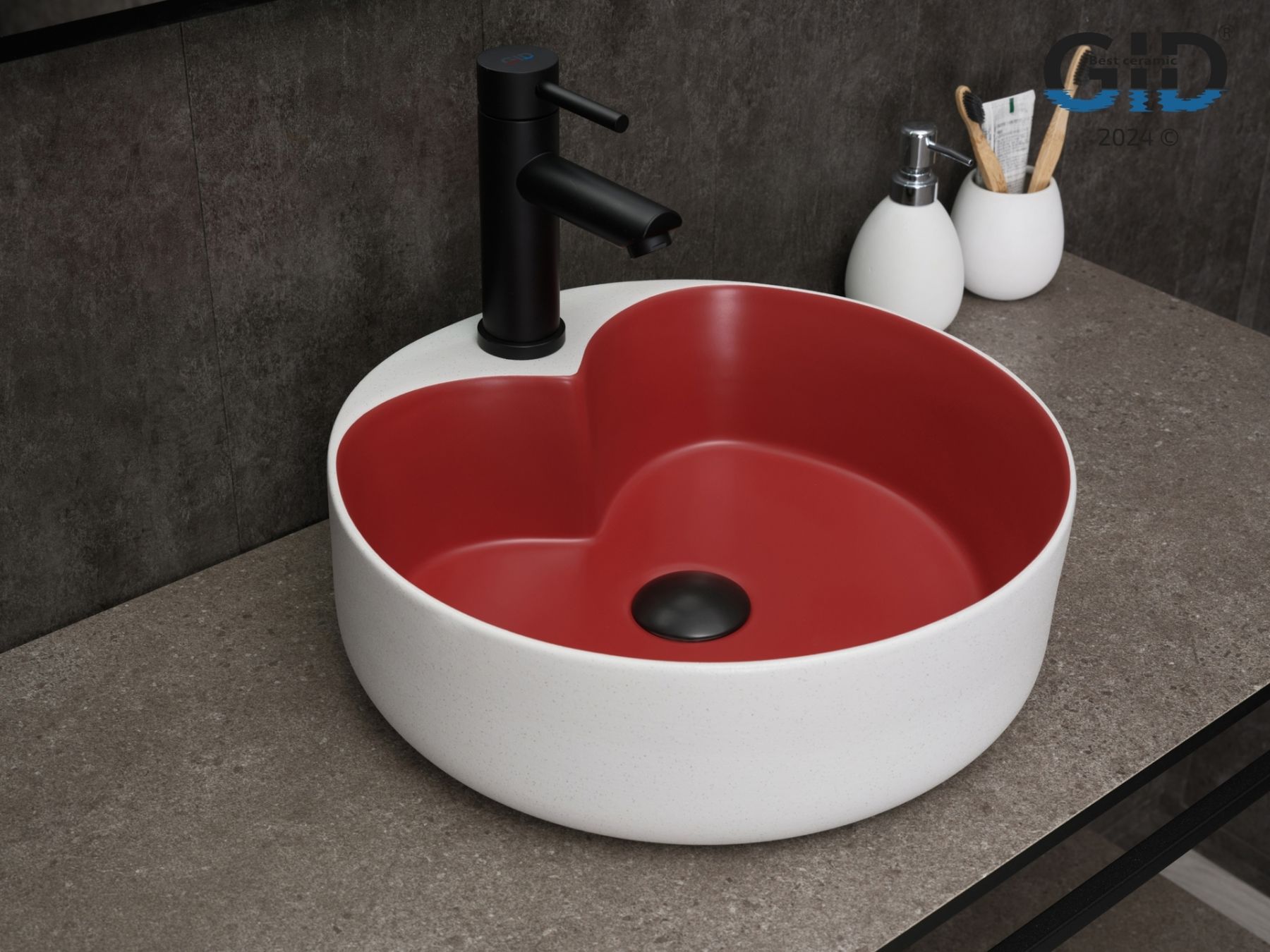 Раковина Gid N9013LS 52237 накладная красная матовая / белый графит 40x40x13 купить