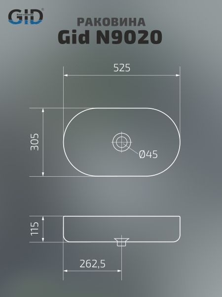 Раковина Gid N9020 51209 накладная белая 52.5x30.5x11.5 купить