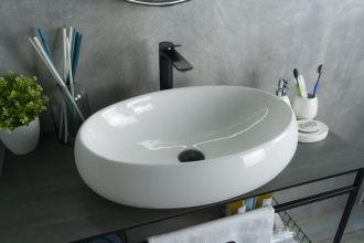 Серия Lago овальной формы — это испанское качество, соответствующее современным европейским требованиям. Накладная раковина GiD N9030а — сочетание элегантного дизайна и практичности для вашей ванной комнаты. Изготовлена из мелкопористой керамики с белым глянцевым покрытием, она придаст интерьеру свежесть и утонченность. Овальная форма обеспечивает оптимальное пространство для комфортного использования. Отсутствие отверстия под смеситель подчеркивает минималистичный стиль, а накладной способ монтажа на столешницу облегчает установку и позволяет создать современный облик ванной комнаты.