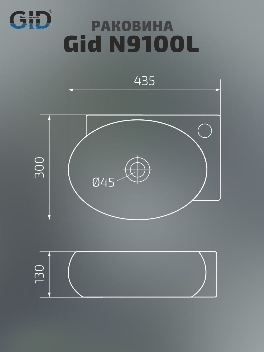 Раковина Gid N9100L 61103L подвесная белая 43.5x30x13 Раковина Gid N9100L 61103L подвесная белая 43.5x30x13 Казань 4977.00 6300.00 GID