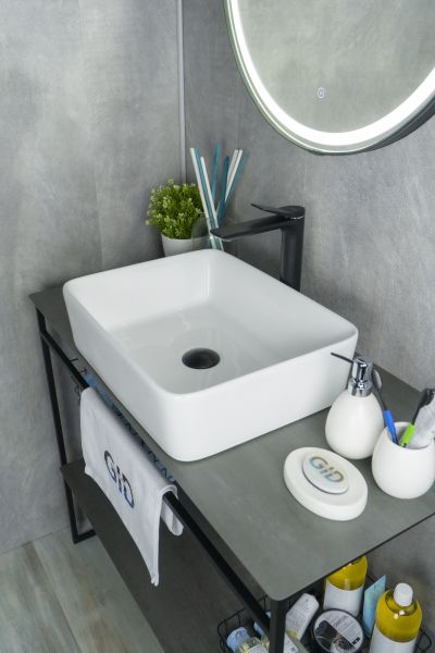 Серия Geometrico с прямоугольной формой: стиль и практичность с испанским качеством и европейскими стандартами. Накладная раковина GiD N9103 без отверстия под смеситель, изготовлена из мелкопористой керамики в белом глянцевом цвете. Гладкое стекловидное покрытие позволяет раковине быть устойчивой к загрязнениям. Прямоугольная форма и компактные размеры обеспечивают комфортное использование и легкую установку.