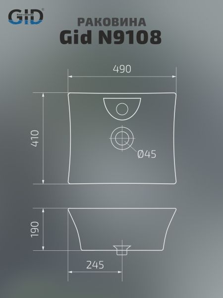 Раковина Gid N9108 51121 накладная белая 49x41x19 Раковина Gid N9108 51121 накладная белая 49x41x19 Казань 4819.00 6100.00 GID
