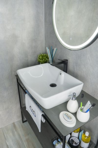 Серия Geometrico с прямоугольной формой: стиль и практичность с испанским качеством и европейскими стандартами. Накладная раковина GiD N9121 — сочетание элегантного дизайна и практичности для вашей ванной комнаты. Изготовлена из мелкопористой керамики с белым глянцевым покрытием, она придаст интерьеру свежесть и утонченность. Прямоугольная форма обеспечивает оптимальное пространство для комфортного использования. Отсутствие отверстия под смеситель подчеркивает минималистичный стиль, а накладной способ монтажа на столешницу облегчает установку и позволяет создать современный облик ванной комнаты.