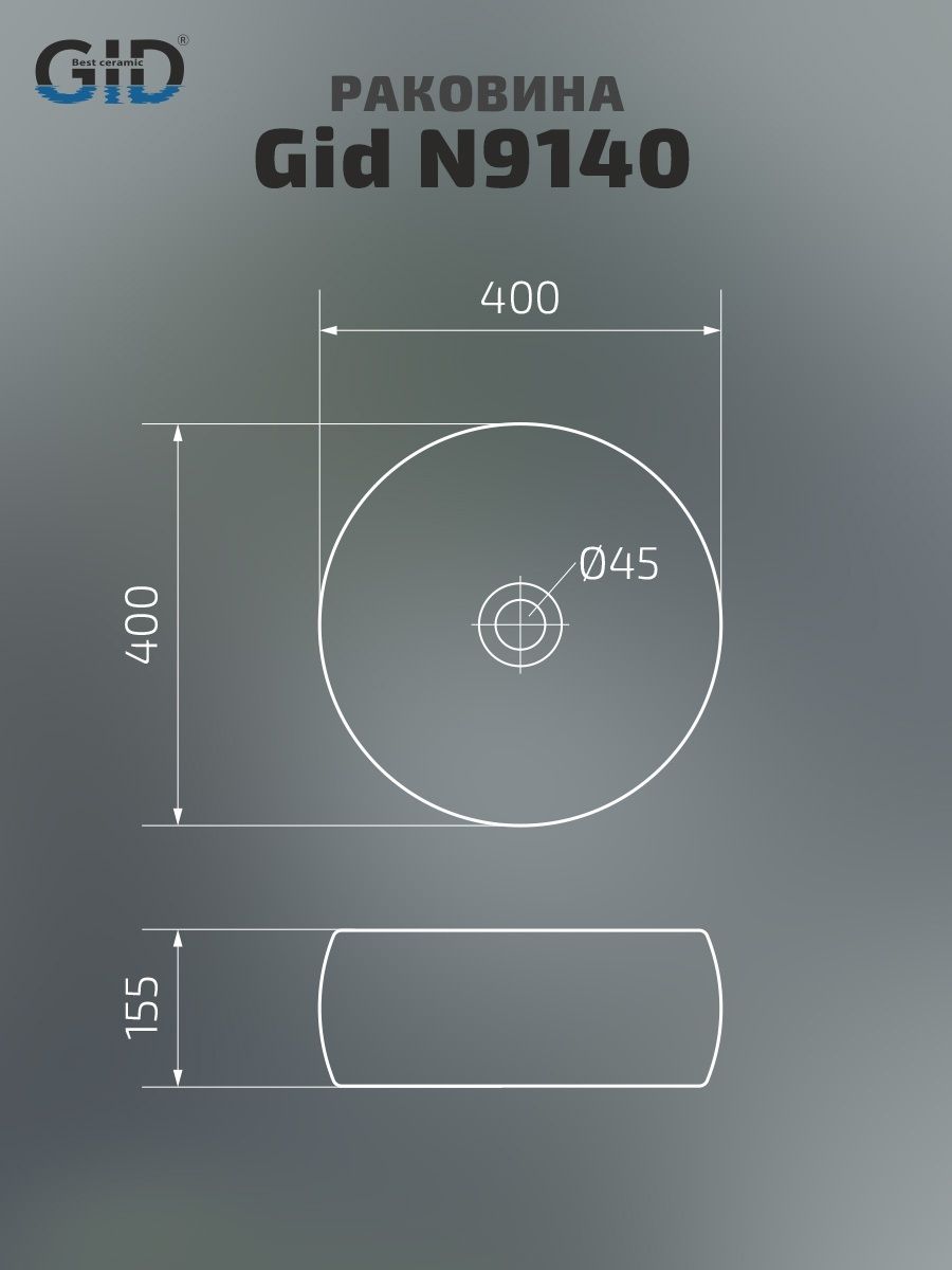 Раковина Gid N9140 51213 накладная белая 40x40x15.5 купить