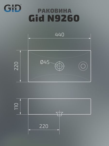 Раковина Gid N9260 61123 подвесная белая 44x22x11 Раковина Gid N9260 61123 подвесная белая 44x22x11 Казань 6600.00 {old_price} GID