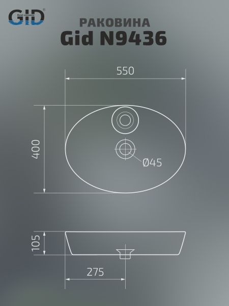 Раковина Gid N9436 51150 накладная белая 55x40x10.5 купить
