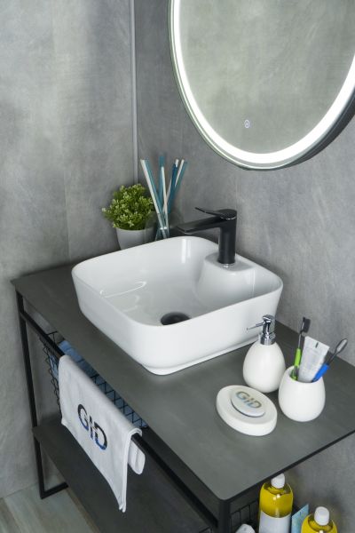 Серия Geometrico с прямоугольной формой: стиль и практичность с испанским качеством и европейскими стандартами. Раковина накладная GiD N9443 - это стильная модель, выполненная из высококачественной мелкопористой керамики с белым глянцевым покрытием, что обеспечивает долговечность и легкость в уходе. Квадратная форма придает ей элегантность и современность, а эргономичная чаша удобна для повседневного использования. Накладная конструкция позволяет легко установить раковину на столешнице, предоставляя дополнительное пространство вокруг. Оснащена отверстием под смеситель, что делает её удобным выбором для современной ванной комнаты.