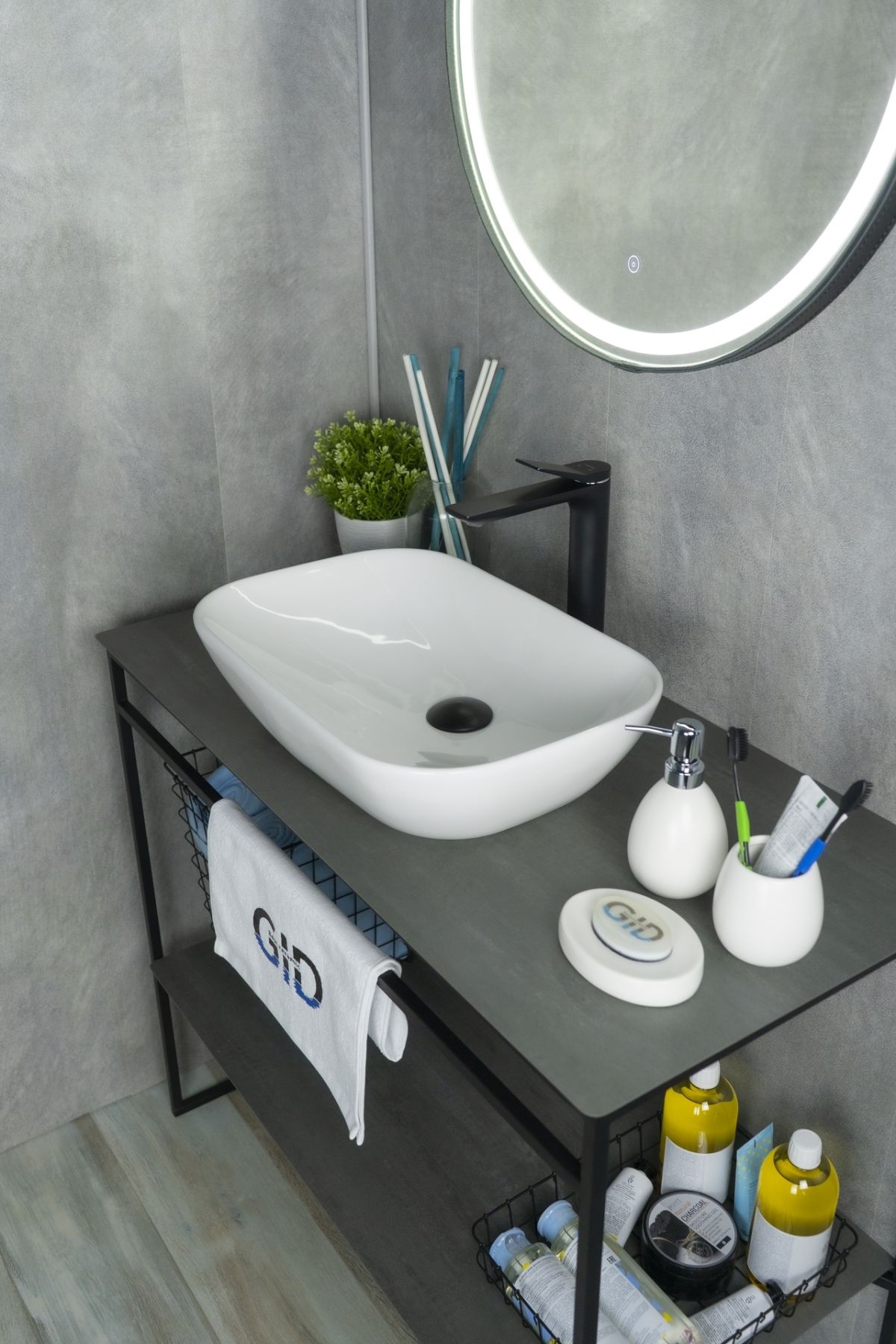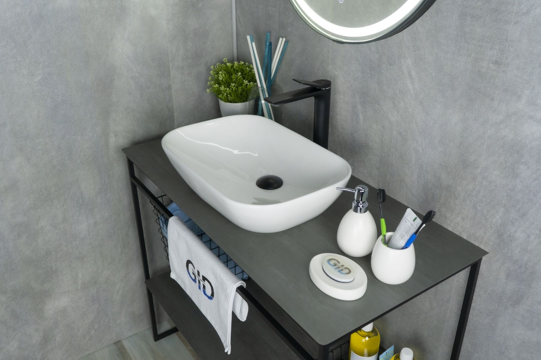 Серия Geometrico с прямоугольной формой: стиль и практичность с испанским качеством и европейскими стандартами. Накладная раковина GiD N9447 — сочетание элегантного дизайна и практичности для вашей ванной комнаты. Изготовлена из мелкопористой керамики с белым глянцевым покрытием, она придаст интерьеру свежесть и утонченность. Прямоугольная форма обеспечивает оптимальное пространство для комфортного использования. Отсутствие отверстия под смеситель подчеркивает минималистичный стиль, а накладной способ монтажа на столешницу облегчает установку и позволяет создать современный облик ванной комнаты.