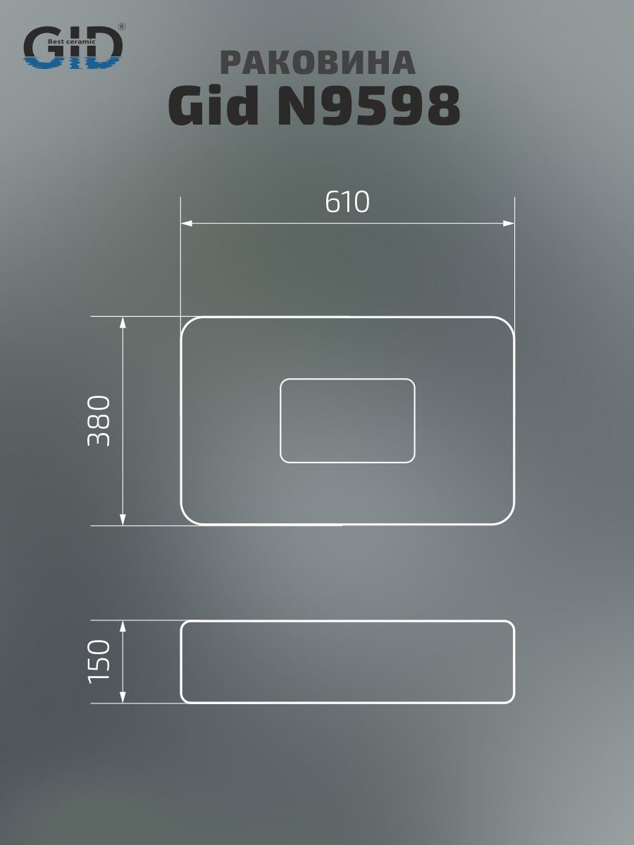 Раковина Gid N9598 51230 накладная белая 61x38x15 купить