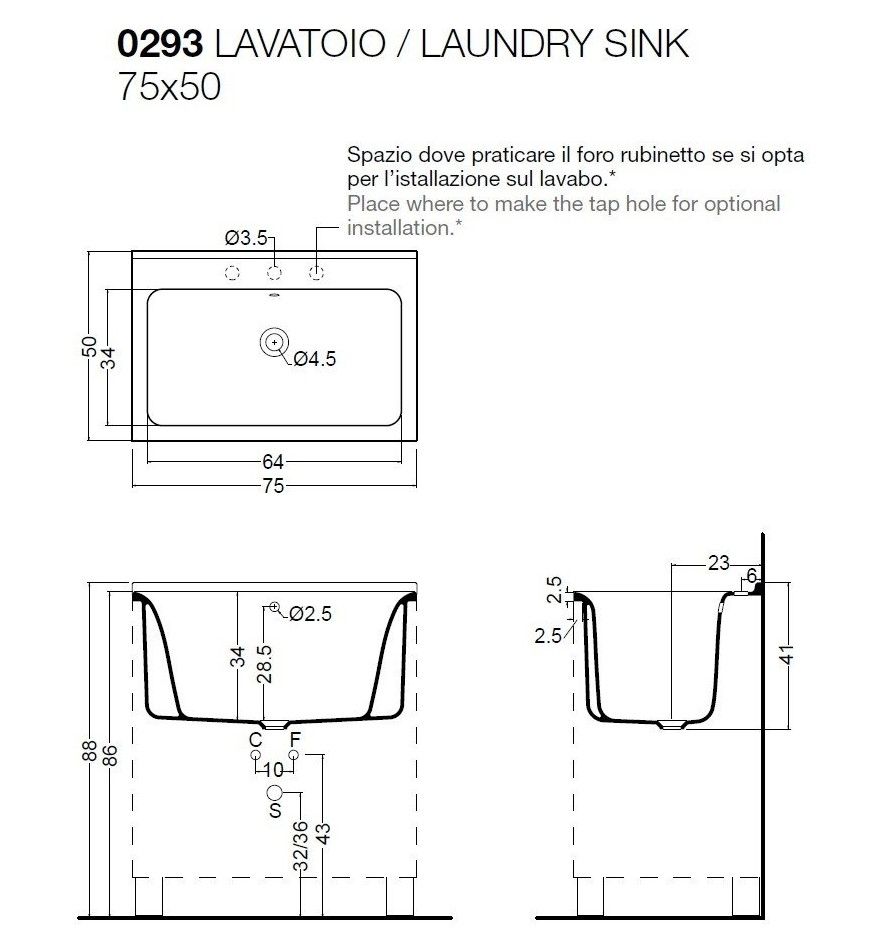 Раковина хозяйственная Kerasan Aquadom 029301*0 75см белый купить
