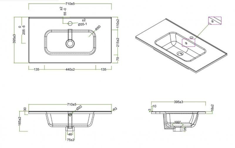 Керамическая раковина 70х40см, белаяРаковина сифоном не комплектуется