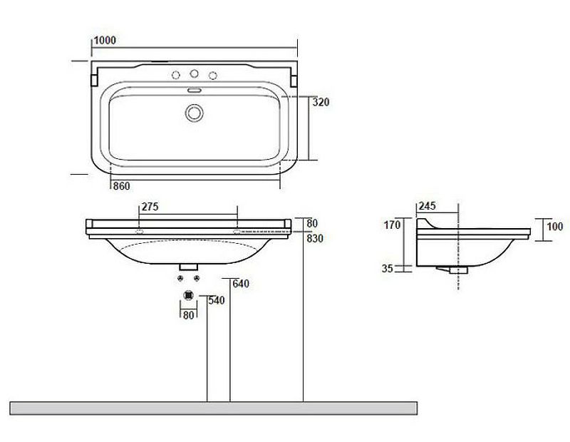 Размер (ШхВхГ): 1000x205x550 мм.